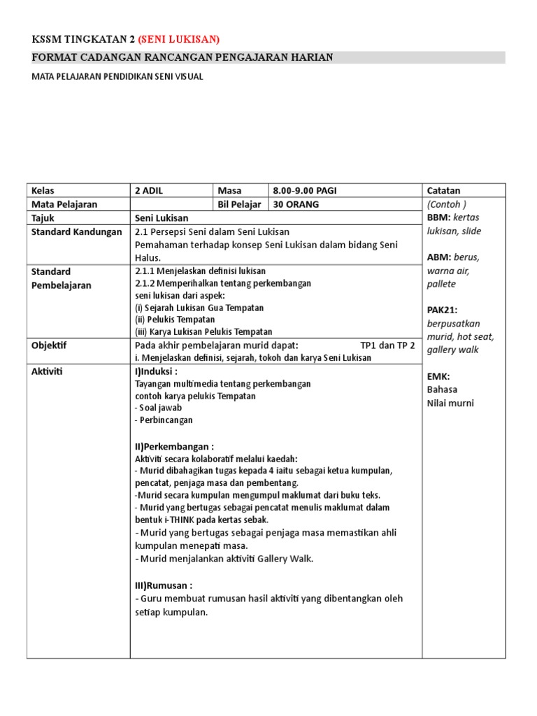 Contoh rph sains tahun 1 kssr semakan 2017. Rph contoh kssm seni tingkatan 2 2018 rph. Rancangan pengajaran tahunan sains tingkatan 4 sekolah menengah.